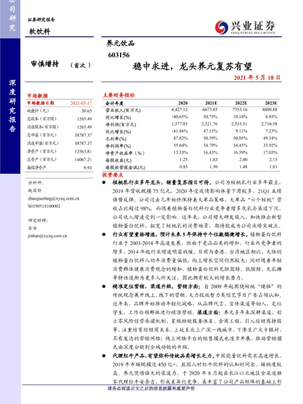 【兴业证券】【20210518】稳中求进,龙头养元复苏有望-25页 行业研究