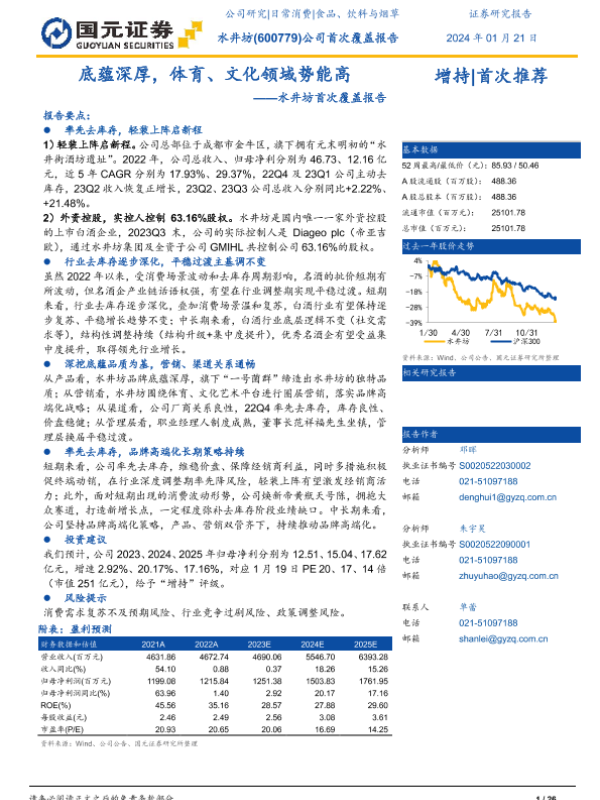 【国元证券】【20240121】20240121-国元证券-水井坊-600779.SH-首次覆盖报告:底蕴深厚,体育、文化领域势能高-26页 行业研究