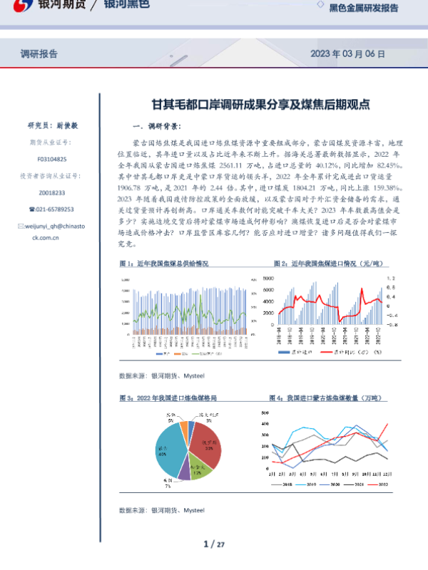 【银河期货】【20230306】黑色金属研发报告:甘其毛都口岸调研成果分享及煤焦后期观点-27页 行业研究