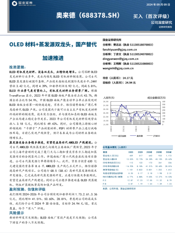 【国金证券】【20240909】奥来德(688378)OLED材料+蒸发源双龙头,国产替代加速推进-26页 行业研究