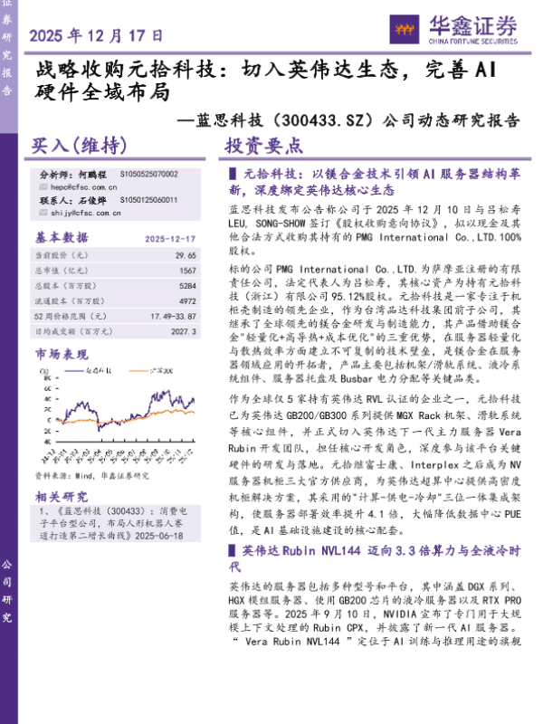 【华鑫证券】【202512】战略收购元拾科技:切入英伟达生态,完善 A I 硬件全域布局-6页 公司研究