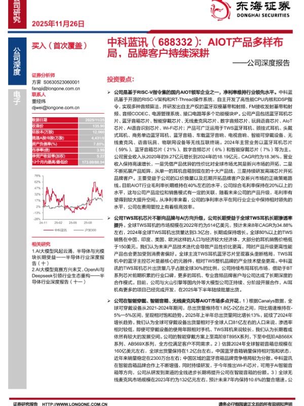 【东海证券】【202511】中科蓝讯(688332):A IOT产品多样布局,品牌客户持续深耕-30页 证券期货研究报告