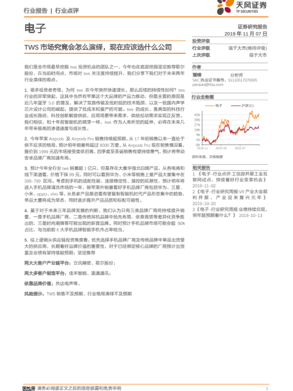 【天风证券】【20191107】TWS市场究竟会怎么演绎,现在应该选什么公司-2页 行业研究
