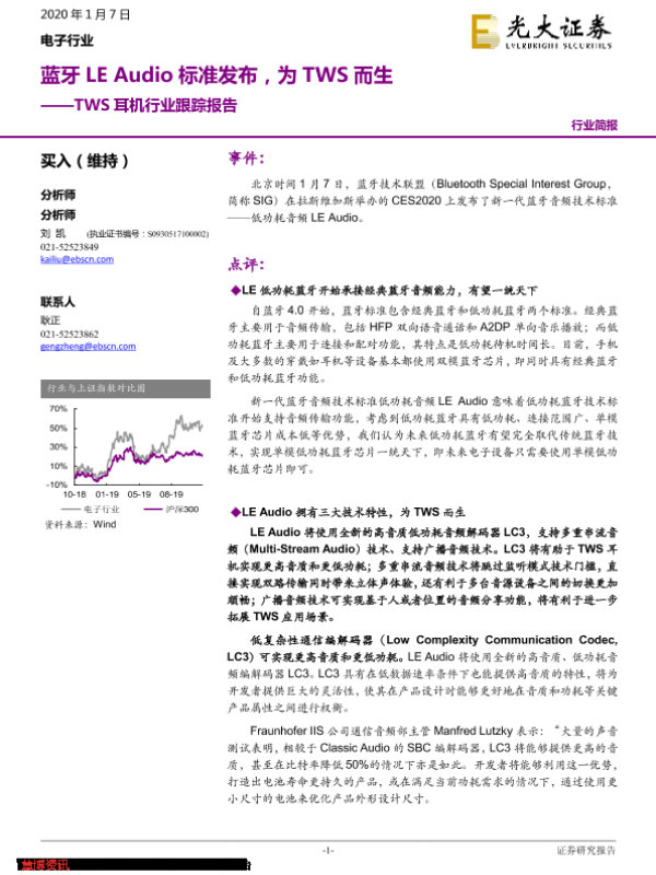 【光大证券】【20200107】20200107-光大证券-TWS耳机行业跟踪报告:蓝牙LE Audio标准发布,为TWS而生-6页 行业研究