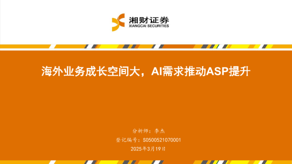 【湘财证券】【20250319】海外业务成长空间大,AI需求推动ASP提升-30页 行业研究