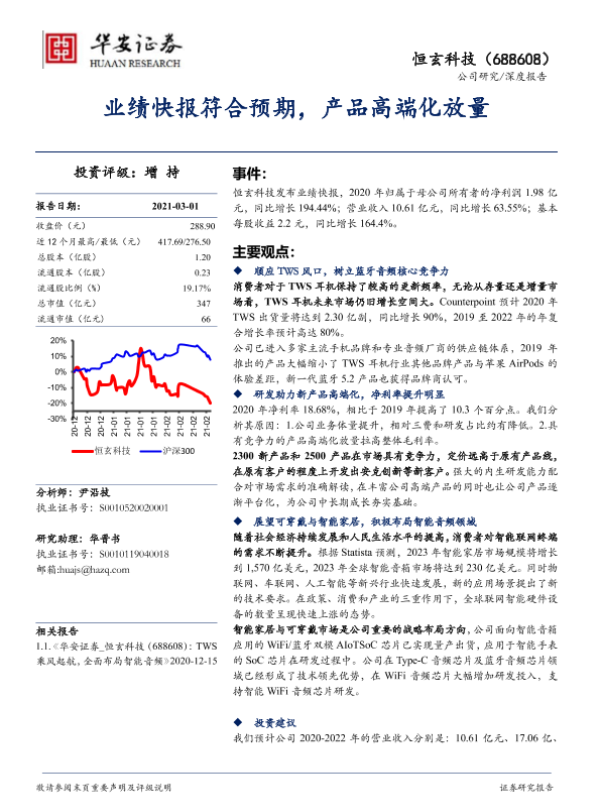 【华安证券】【20210301】恒玄科技-业绩快报符合预期,产品高端化放量-14页 行业研究