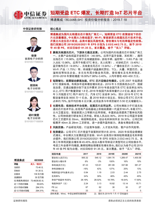 【中信证券】【20190718】短期受益ETC爆发,长期打造IoT芯片平台-33页 行业研究