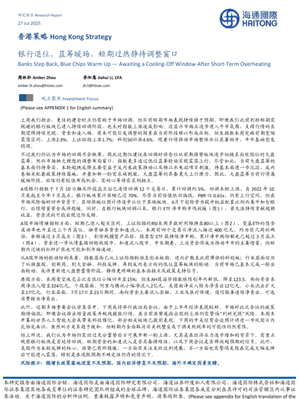 【海通国际】【202507】银行退位、蓝筹暖场,短期过热静待调整窗口-10页 证券期货研究报告