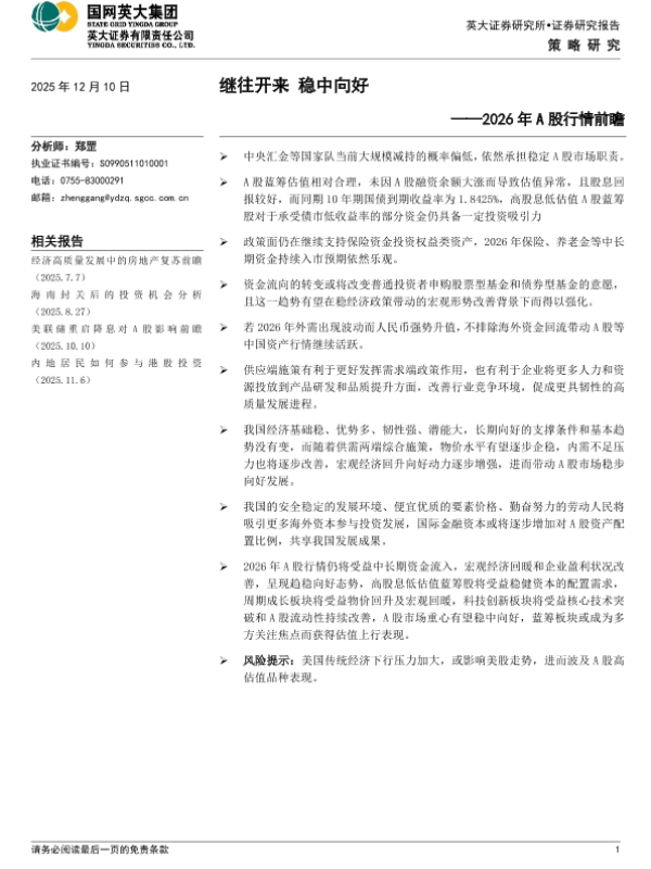 【YINGDA SECURITIES CO.<D.】【202512】继往开来稳中向好——2026年A股行情前瞻-11页 证券期货研究报告