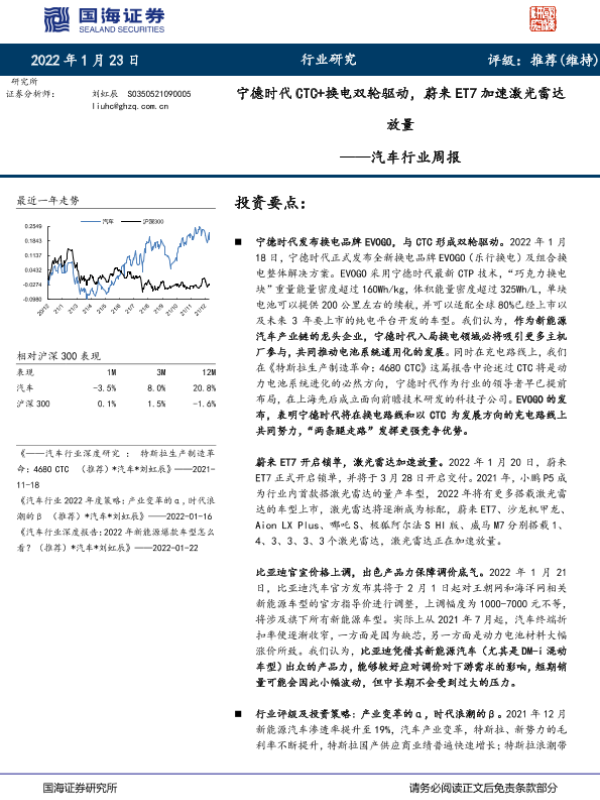 【国海证券】【20220123】宁德时代CTC+换电双轮驱动,蔚来ET7加速激光雷达放量-22页 行业研究