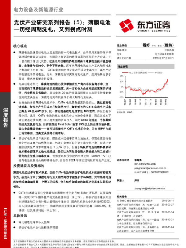 【东方证券】【20190701】光伏产业研究系列报告(5):薄膜电池—历经周期洗礼,又到拐点时刻-44页 行业研究