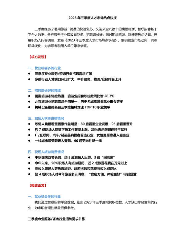 【智联招聘】【20231022】2023年三季度人才市场热点快报-14页 市场调研