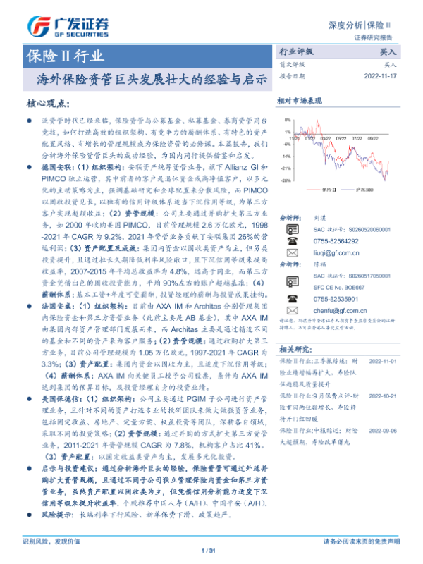 【广发证券】【20221117】保险Ⅱ深度分析:海外保险资管巨头发展壮大的经验与启示-31页 行业研究