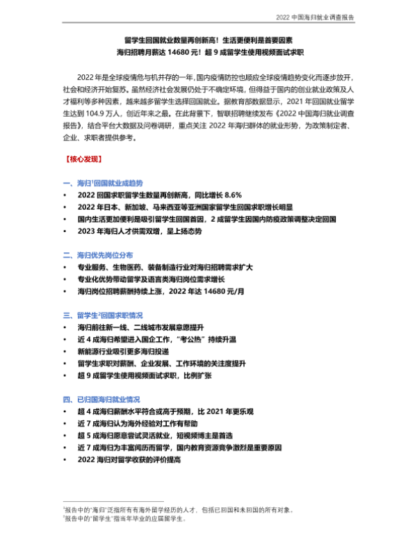 【智联招聘】【2022】2022中国海归就业调查报告-19页 市场调研