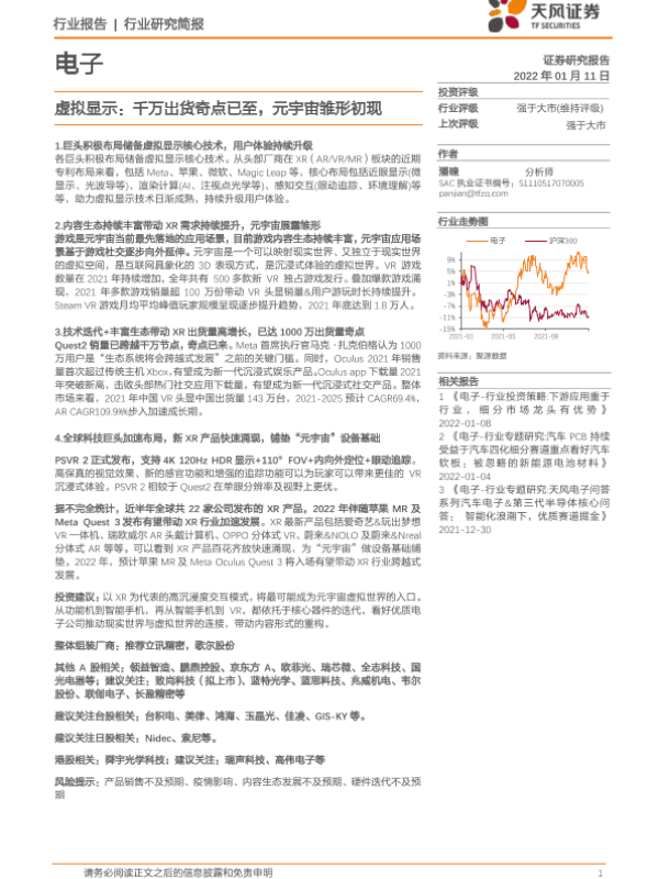 【天风证券】【20220111】电子行业:虚拟显示,千万出货奇点已至,元宇宙雏形初现-18页 行业研究