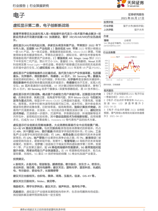 【天风证券】【20210517】电子行业深度研究:虚拟显示第二春,电子创新新战场-72页 行业研究