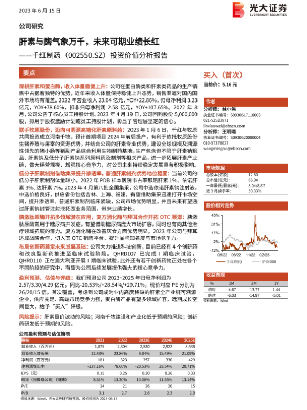 【光大证券】【20230615】肝素与酶气象万千,未来可期业绩长红——千红制药(002550.SZ)投资价值分析报告-36页 行业研究