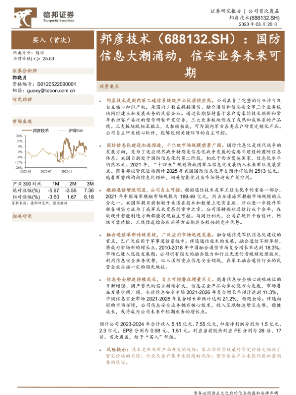 【德邦证券】【20230320】国防信息大潮涌动,信安业务未来可期-39页 行业研究