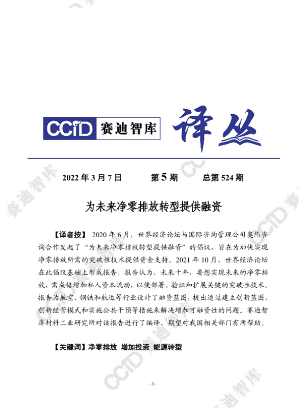 【世界经济论坛】【202203】为未来净零排放转型提供融资-20页 行业研究