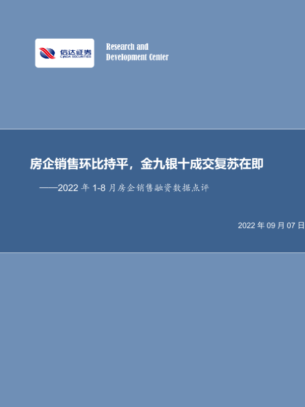 【信达证券】【20220907】房企销售环比持平,金九银十成交复苏在即-13页 行业研究