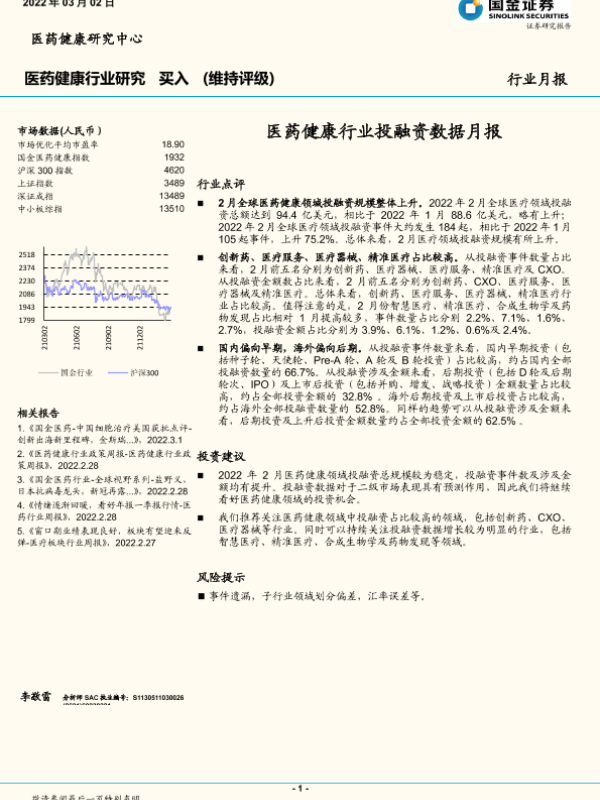 【国金证券】【20220302】医药健康行业投融资数据月报-10页 行业研究