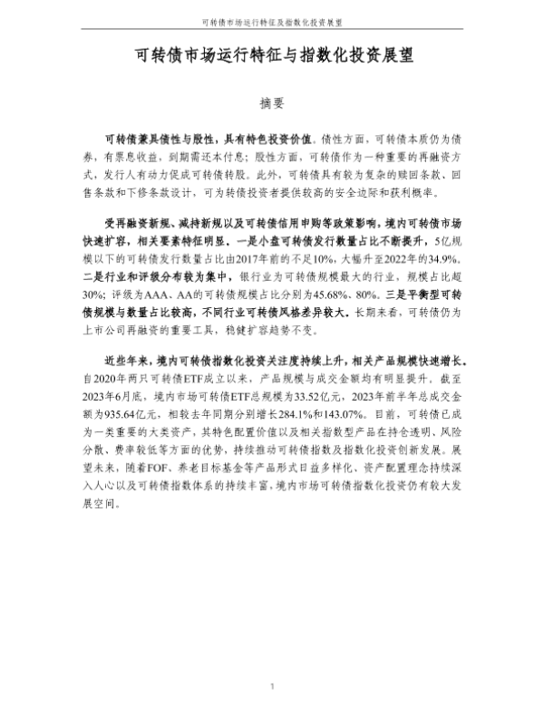 【中证指数】【2023】中证指数-可转债市场运行特征与指数化投资展望-17页 行业研究