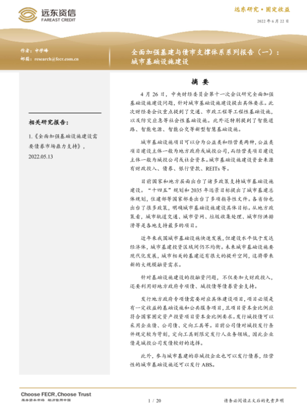 【远东资信】【20220622】全面加强基建与债市支撑体系系列报告(一):城市基础设施建设-20页 行业研究