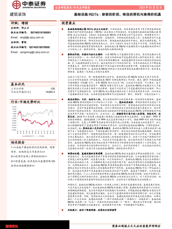 【中泰证券】【20200502】基础设施REITs:崭新的阶段、绝佳的契机与难得的机遇-11页 行业研究