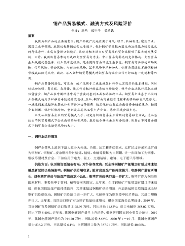 【联合资信】【20201223】铜行业:铜产品贸易模式、融资方式及风险评价-8页 行业研究
