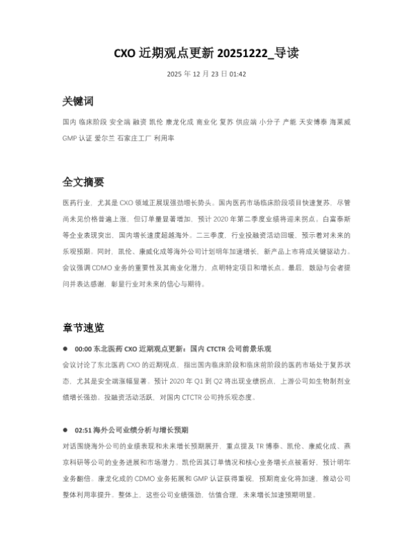 【东北医药】【202512】CXO近期观点更新 20251222_导读-3页 会议纪要