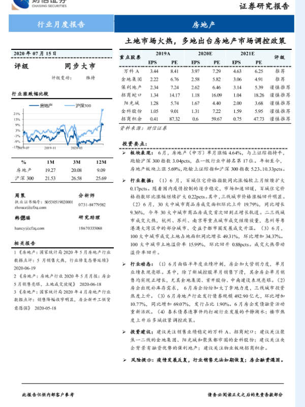 【财信证券】【20200715】房地产行业月度报告:土地市场火热,多地出台房地产市场调控政策-14页 行业研究