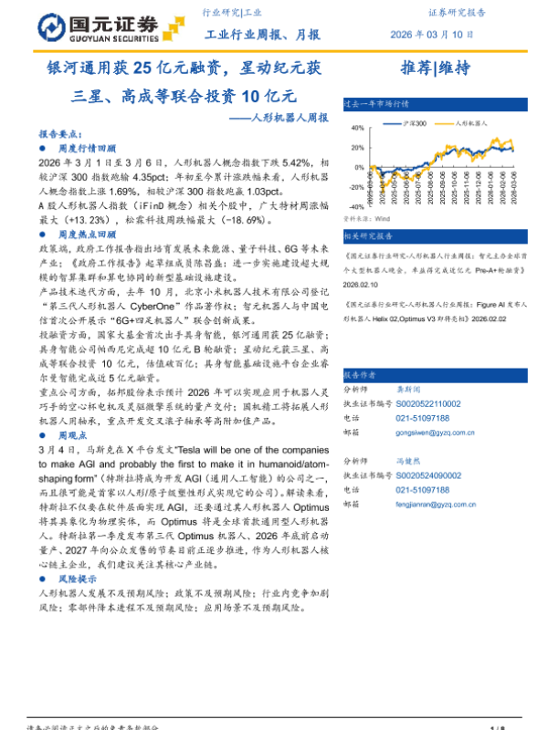 【国元证券】【202603】银河通用获25亿元融资,星动纪元获三星、高成等联合投资10亿元-8页 证券期货研究报告