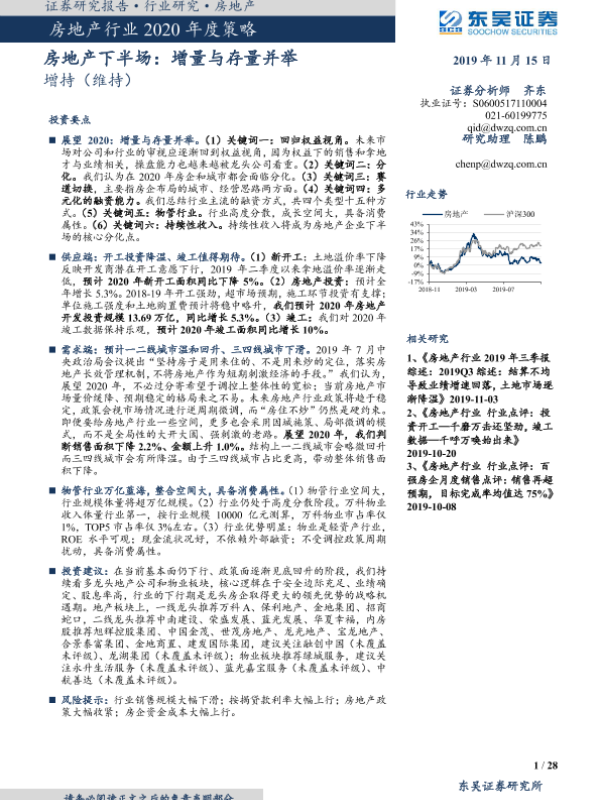 【东吴证券】【20191115】房地产行业2020年度策略:房地产下半场:增量与存量并举-28页 行业研究