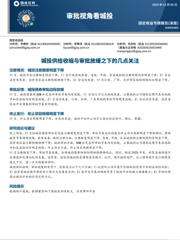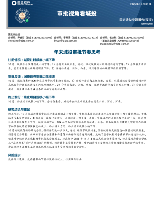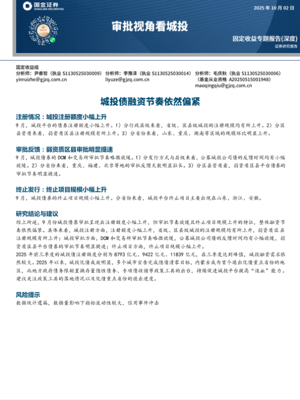 【国金证券】【2025】审批视角看城投_城投债融资节奏依然偏紧-13页 证券期货研究报告
