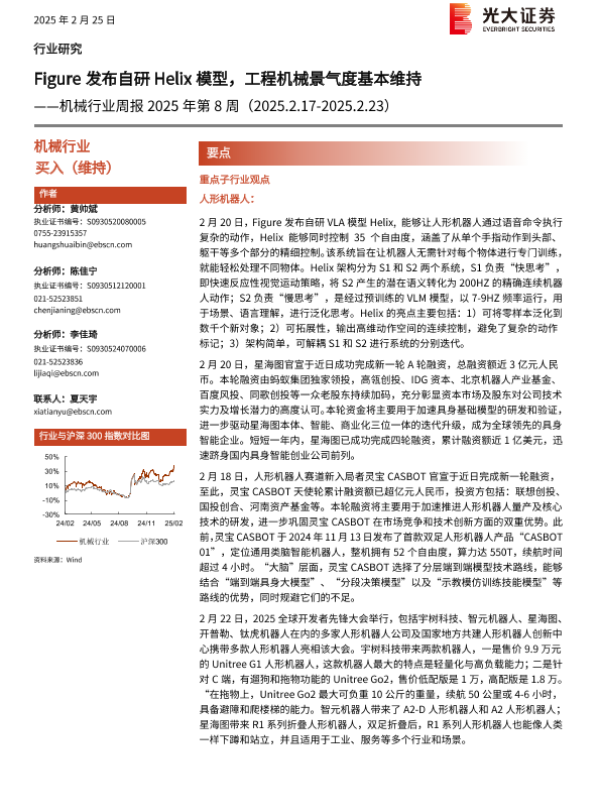 【光大证券】【20250225】机械行业周报2025年第8周:Figure发布自研Helix模型,工程机械景气度基本维持-13页 行业研究