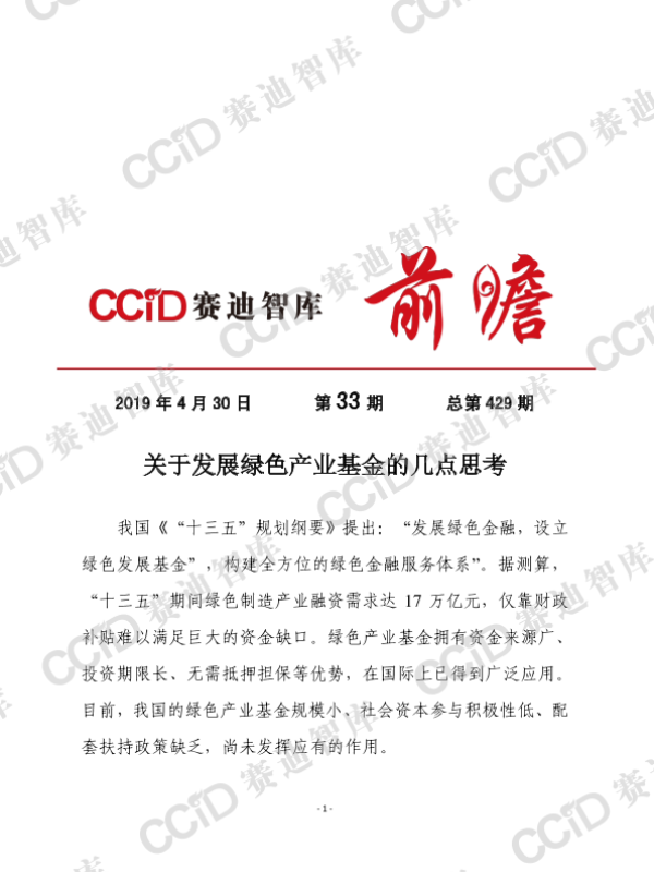 【未知】【20190430】关于发展绿色产业基金的几点思考-7页 行业研究