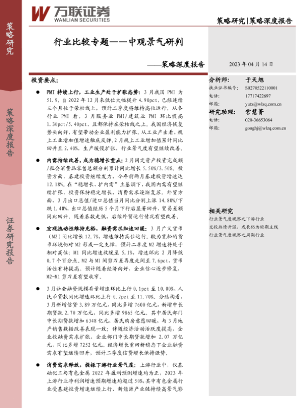 【万联证券】【20230414】策略深度报告:行业比较专题——中观景气研判-24页 宏观策略