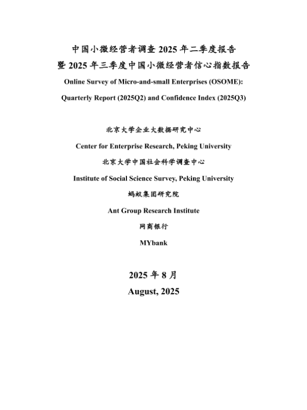 【北京大学企业大数据研究中心&中国社会科学调查中心&蚂蚁集团研究院&网商银行】【202508】2025年二季度报告 暨 2025年三季度中国小微经营者信心指数报告-36页 市场调研