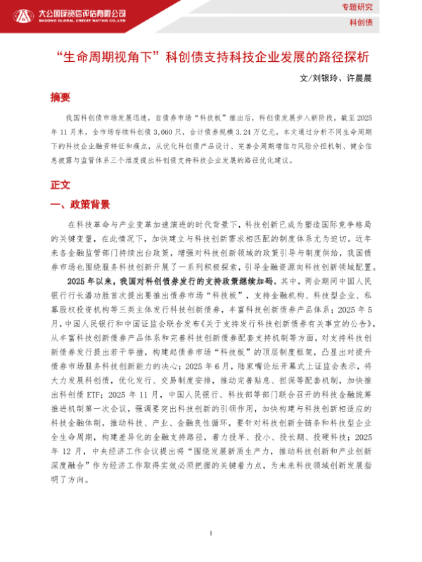 【大公国际】【2025】“生命周期视角下”科创债支持科技企业发展的路径探析-6页 证券期货研究报告