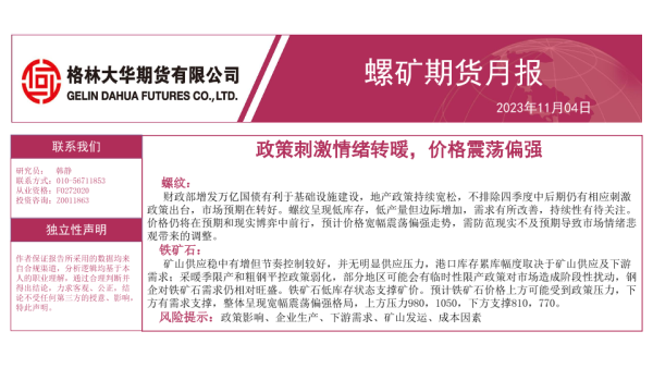 【格林大华期货】【20231104】螺矿期货月报:政策刺激情绪转暖,价格震荡偏强-38页 行业研究
