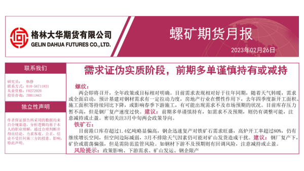【格林大华期货】【20230226】螺矿期货月报:需求证伪实质阶段,前期多单谨慎持有或减持-25页 行业研究