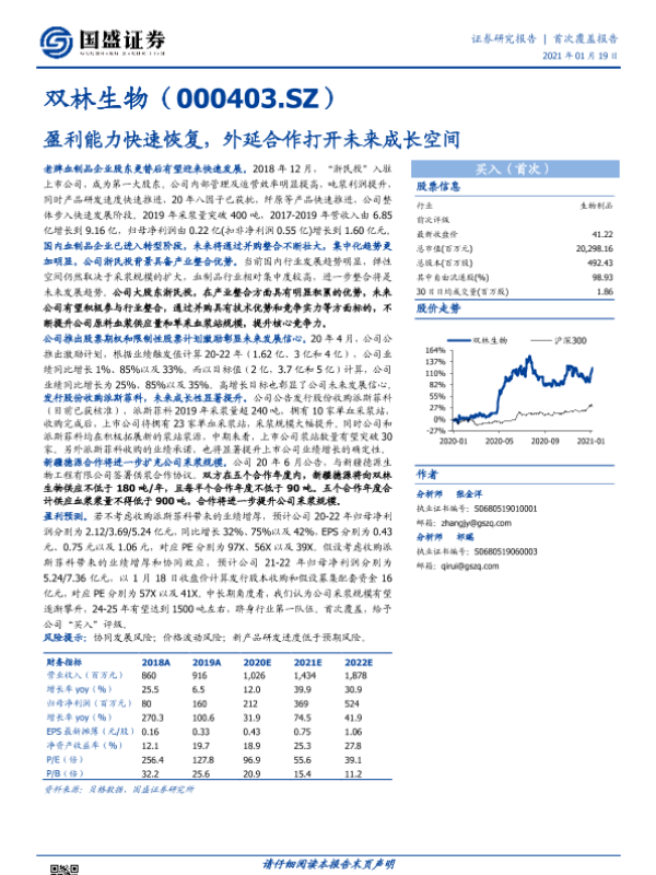【国盛证券】【20210119】双林生物-盈利能力快速恢复,外延合作打开未来成长空间-26页 行业研究