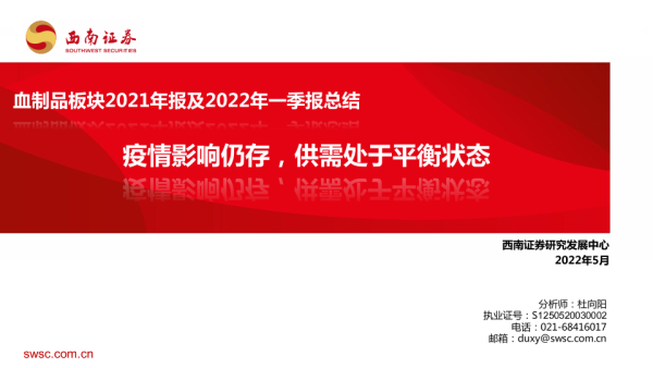【西南证券】【202205】血制品板块2021年报及2022年一季报总结-10页 行业研究