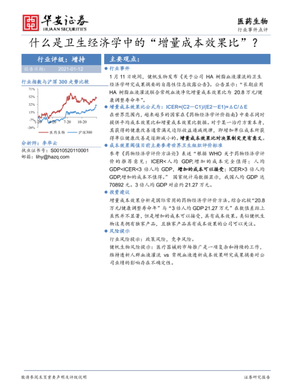【华安证券】【20210112】什么是卫生经济学中的“增量成本效果比”?-6页 行业研究