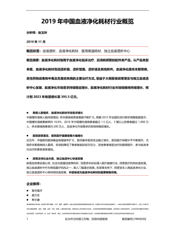 【头豹研究院】【201911】中国血液净化耗材行业概览-36页 行业研究