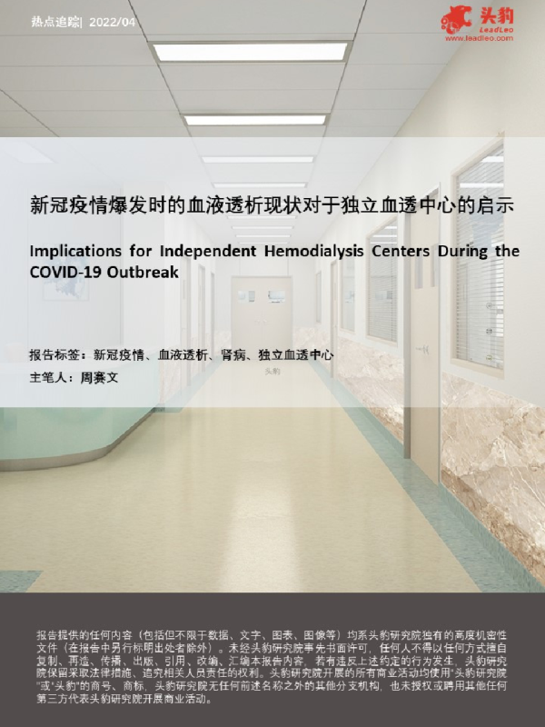 【头豹研究院】【20220629】新冠疫情爆发时的血液透析现状对于独立血透中心的启示-26页 行业研究