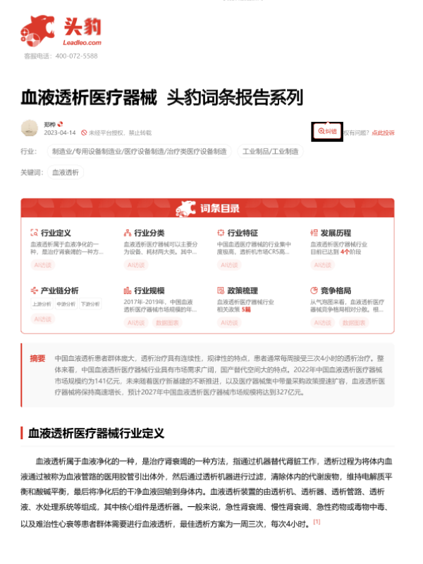【头豹研究院】【20230718】血液透析医疗器械-16页 行业研究