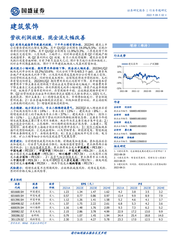 【国盛证券】【20220902】建筑装饰行业专题研究:营收利润放缓,现金流大幅改善-57页 行业研究