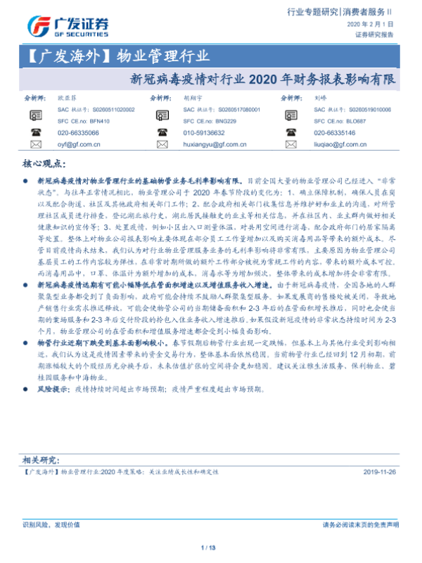 【广发证券】【20200201】新冠病毒疫情对行业2020年财务报表影响有限-13页 行业研究