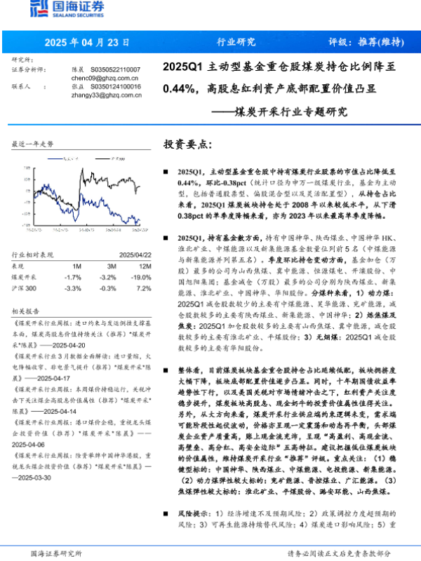 【国海证券】【20250423】2025Q1主动型基金重仓股煤炭持仓比例降至0.44%,高股息红利资产底部配置价值凸显-10页 行业研究